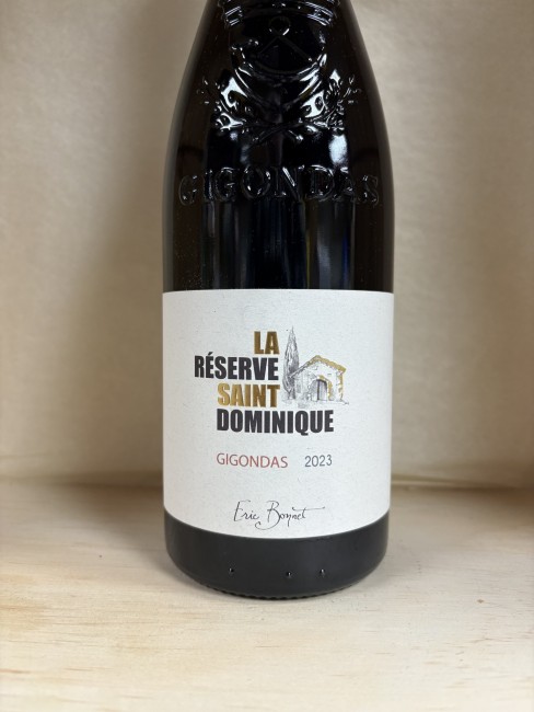 The 2023 La Réserve Saint Dominique Gigondas is a, rich, ripe, and elegant Southern Rhône red blend, typically composed of 80% Grenache, 10% Mourvèdre, and 10% Syrah. Known for its aromatic intensity, it features notes of red/black fruits, peppery garrigue, and spice, with a full-bodied yet, silky finish.